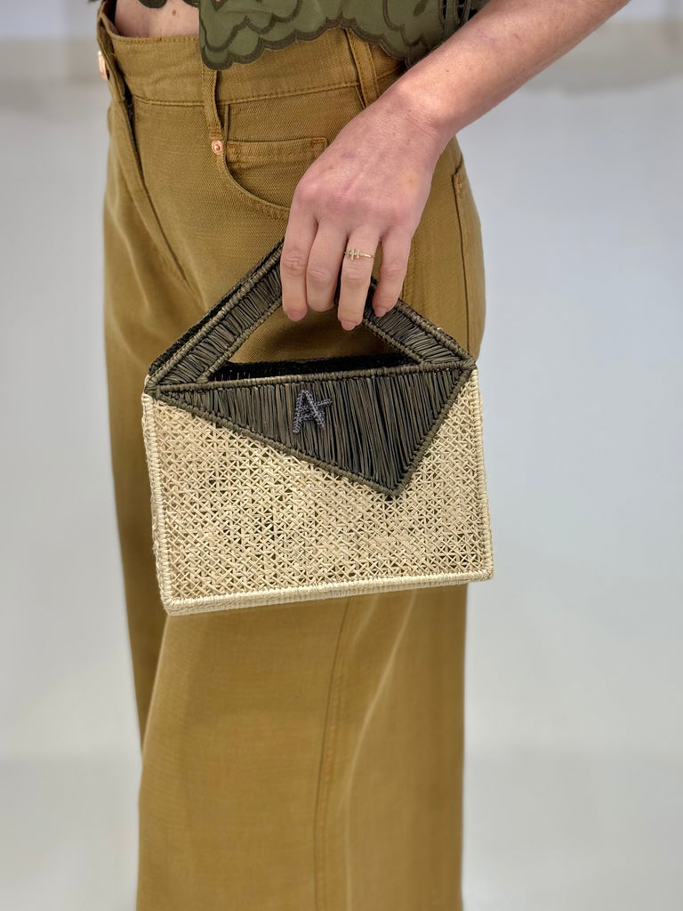 Κομψή τσάντα "APAYA" κατασκευασμένη από πλεγμένα φύλλα φοίνικα σε αποχρώσεις του μαύρου και του nude.