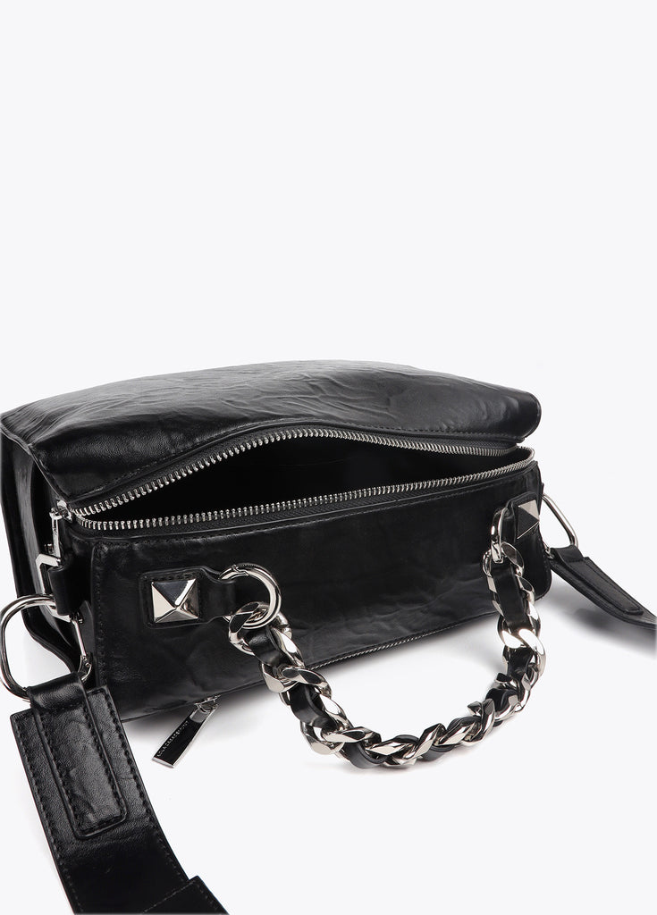 Διακοσμημένο με μεταλλικές λεπτομέρειες, trux, λαβή με αλυσίδα και κλείσιμο με φερμουάρ ενώ διαθέτει και αποσπώμενο λουρί.