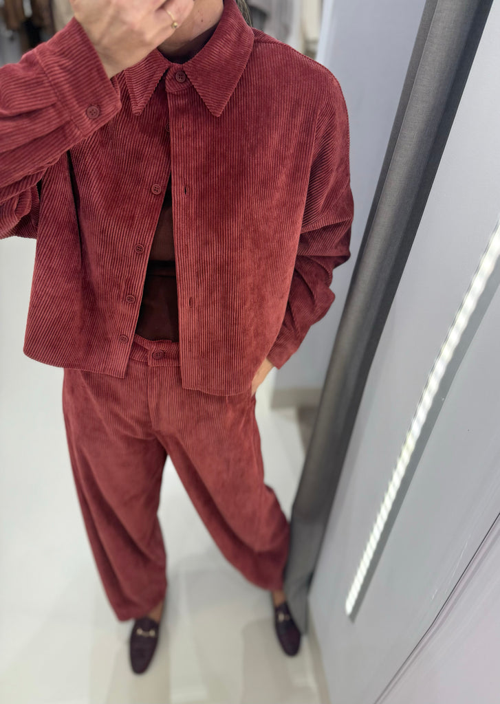 Cropped κοτλέ πουκάμισο "MOUTAKI" σε cropped γραμμή που μπορεί να φορεθεί και ανοιχτό σαν jacket.