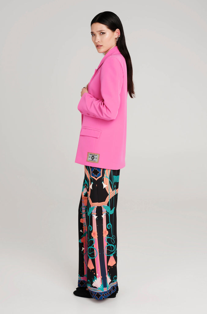 Σακάκι "PEACE AND CHAOS" σε έντονο ροζ χρώμα που ξεχωρίζει για την κομψή γραμμή του.