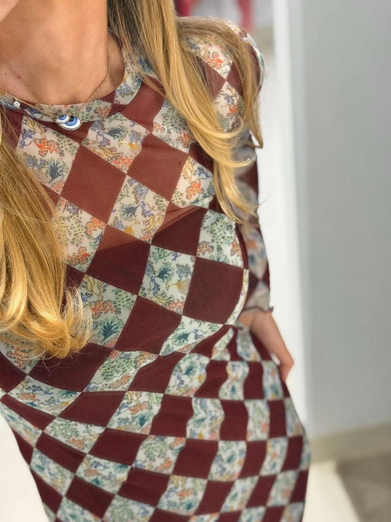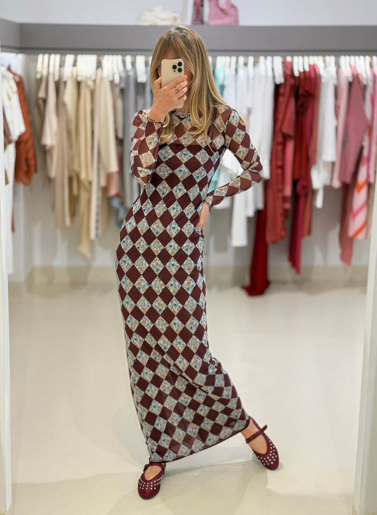 Μaxi sheer φόρεμα "HAALS" από mesh ύφασμα με μακριά μανίκια και εσωτερικό φόρεμα που αναδεικνύει τη σιλουέτα.