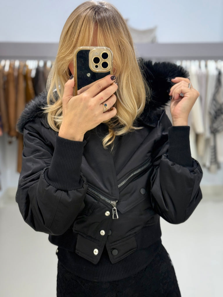 Cropped jacket "OPEN" με αποσπώμενο γιακά και διακοσμητικά φερμουάρ.