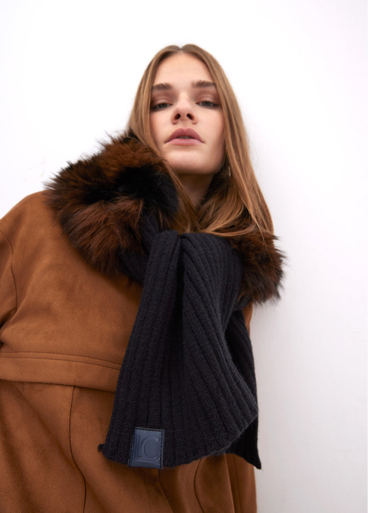 Κομψό κασκόλ "LOLA CASADEMUNT" που συνδυάζει ζεστό πλεκτό με απαλό ύφασμα από faux fur.