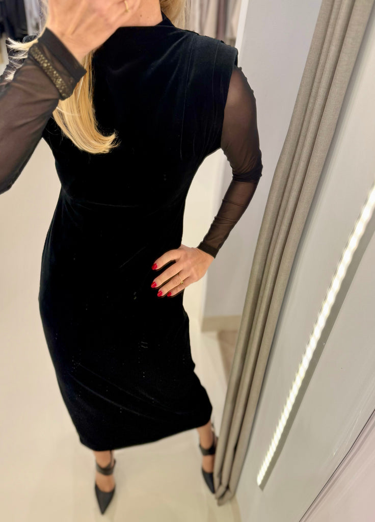 Midi velvet φόρεμα "LOLA CASADEMUNT" με sheer chiffon μανίκια.