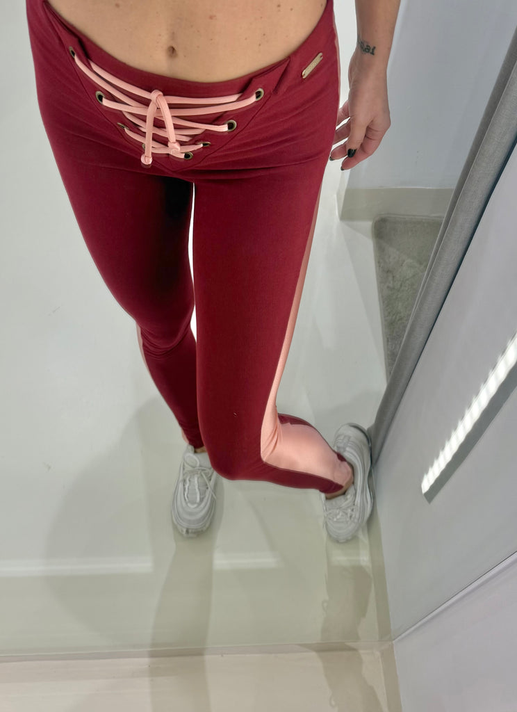 Eλαστικό βαμβακερό κολάν "SUNSETGO" με ροζ ρίγα στα πλαϊνά και δέσιμο στο μπροστινό μέρος με laces στην ίδια απόχρωση.