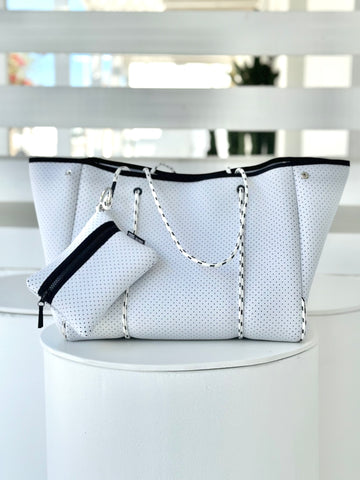 Perforated neoprene (wet-suit material) bags are perfect for your active days.