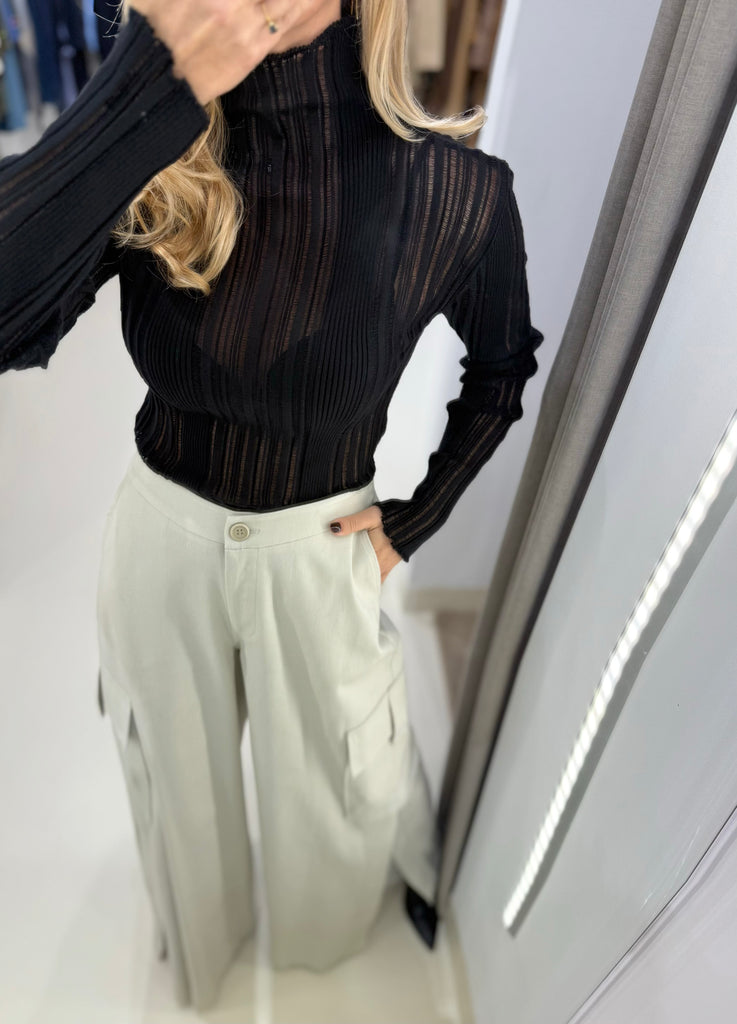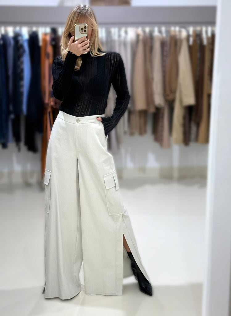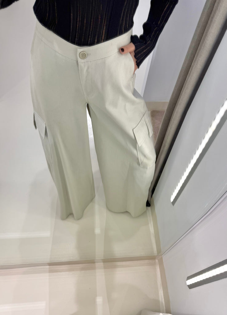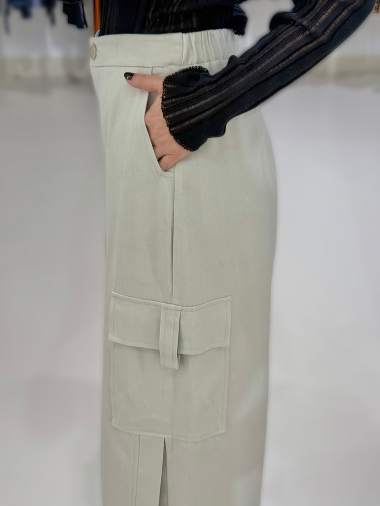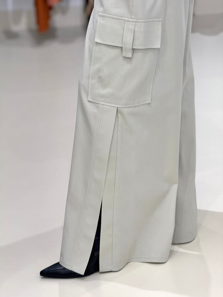 Ψηλόμεσο wide-leg cargo παντελόνι "MOUTAKI" με μεγάλες πλαϊνές τσέπες και σκίσιμο στο πλάι , σχεδιασμένο για άνεση και πρακτικότητα.