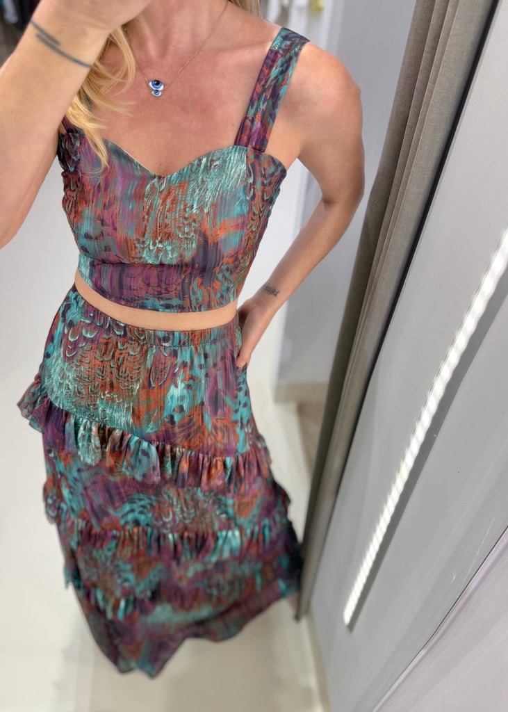 Cropped ελαστικό top "SEVEN SINS" με μοναδικό print της εταιρείας και λεπτομέρεια lurex.