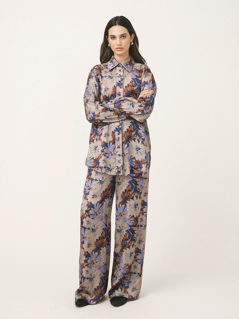 Ψηλόμεσο silky-touch παντελόνι "LOVE AND ALICIA" σε straight γραμμή με μοναδικό floral μοτίβο της εταιρείας και λάστιχο στη μέση που προσφέρει κομψή κίνηση και άνεση για καθημερινές εμφανίσεις.