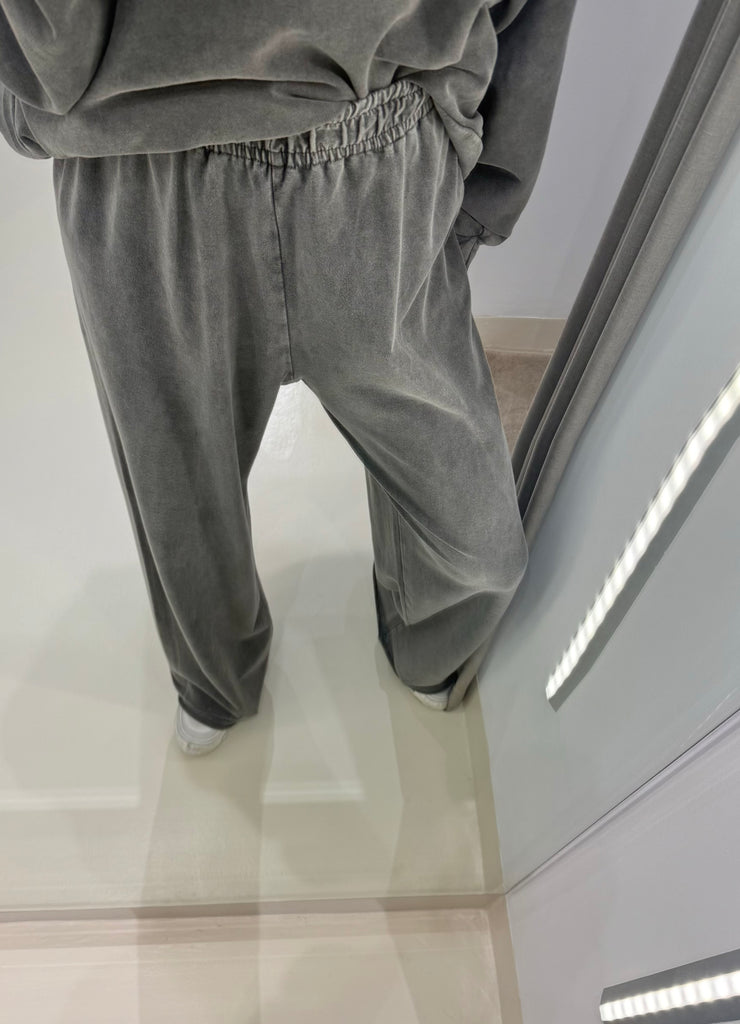 Βαμβακερή φόρμα "MOUTAKI" σε washed grey που αγκαλιάζει το σώμα σε φαρδιά ίσια γραμμή.