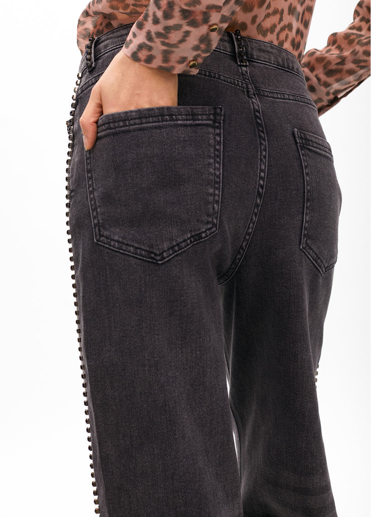 Ψηλόμεσο straight-leg παντελόνι "LOLA CASADEMUNT" σε washed black απόχρωση, με λεπτομέρεια εντυπωσιακά shiny trux κατά μήκος στο πλάι που προσδίδουν μια glam εμφάνιση.