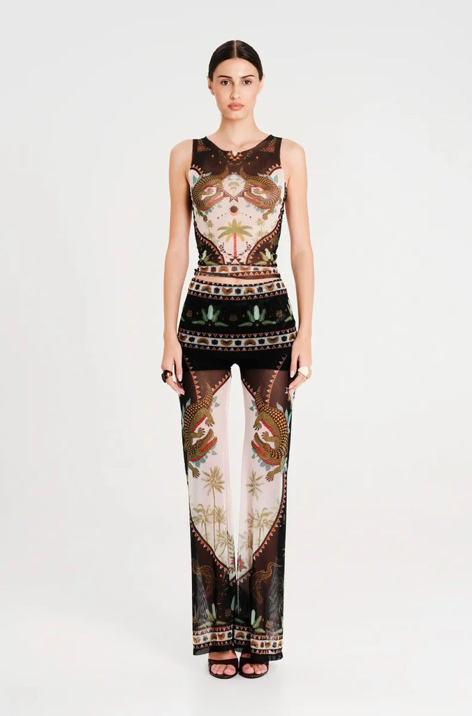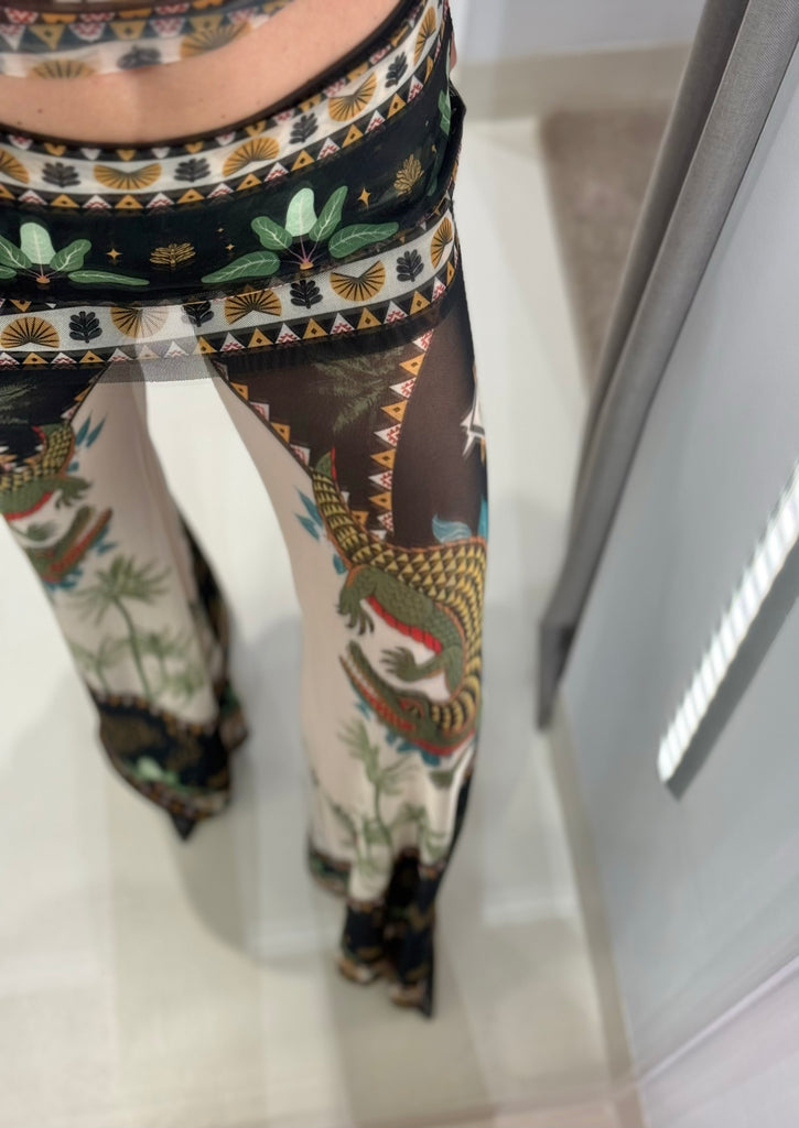 Παντελόνι "PEACE AND CHAOS" από ελαστικό mesh ύφασμα με καμπάνα γραμμή.