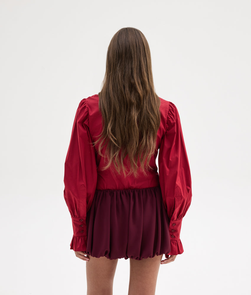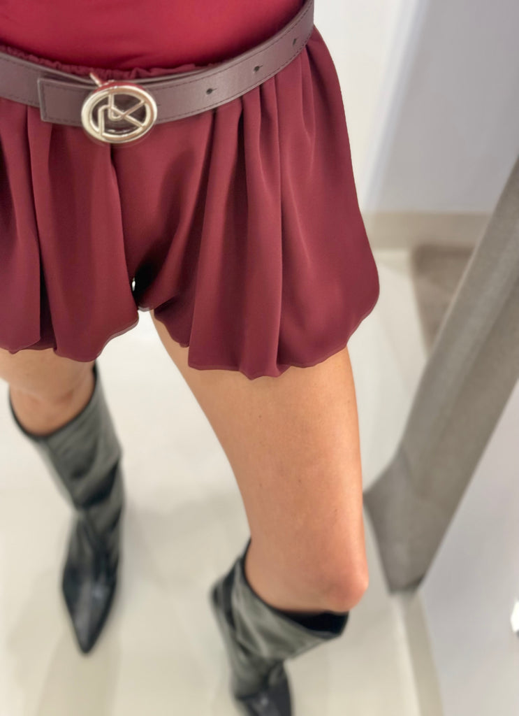Mini shorts "SUNSETGO" σε aubergine απόχρωση με λάστιχο στη μέση για άνετη εφαρμογή και hem στο τελείωμα που χαρίζει εντυπωσιακό balloon σχήμα.
