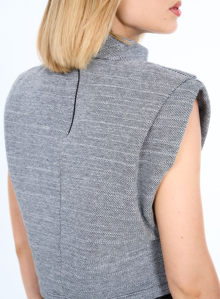 Cropped top "OPEN" με κομψό mock-neck και τονισμένους patched ώμους με διακριτικές πιέτες.