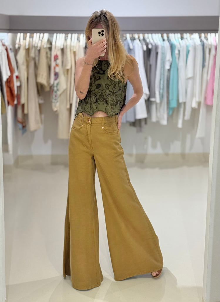 Cropped top "ΜΟUTAKI" σε χαλαρή γραμμή από guipure ύφασμα με κομψό halter-neck σχέδιο που αγκαλιάζει τους ώμους και κλείσιμο με κουμπί στο πίσω μέρος.